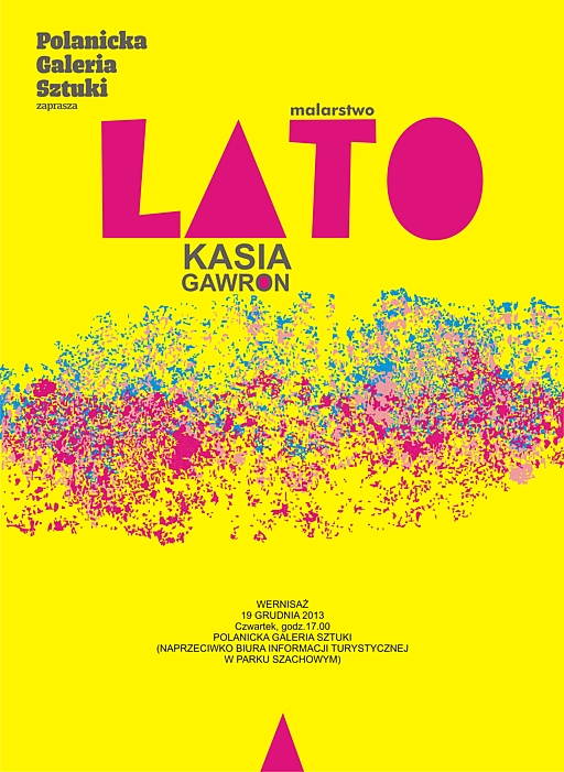 Polanica Galeria Sztuki wznawia swoją działalność. Już 19 grudnia 2013 r. o godz. 17.00 zapraszamy na 52. wernisaż. Swoją wystawę zatytułowaną LATO zaprezentuje Kasia Gawron - absolwentka Akademii Sztuk Pięknych we Wrocławiu i School of Visual Arts w Nowym Jorku. Artystka zawodowo zajmuje się malarstwem, rysunkiem i projektowaniem. Uczestniczyła w wielu wystawach zbiorowych w kraju i za granicą, jest laureatką wielu nagród i wyróżnień. Mieszka i pracuje w Polanicy-Zdroju.