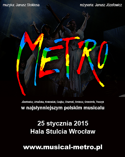 Historia musicalu sięga roku 1987, a światowej prapremiery doczekał się w 1991 roku. Od tamtej pory wystawiany był już prawie 2000 razy i stał się swoistym fenomenem tak krajowym jak i światowym. Z uwagi na swą popularność należy uznać METRO za kultowe wydarzenie teatralne. Żadne inne polskie przedstawienie nie osiągnęło takiej ilości wystawień i nie miało ponad miliona widzów. We Wrocławiu ostatni raz METRO grano w 2013 roku, kiedy to artystom dwukrotnie udało się zapełnić halę do ostatniego miejsca. Zapraszamy na stronę www.musical-metro.pl